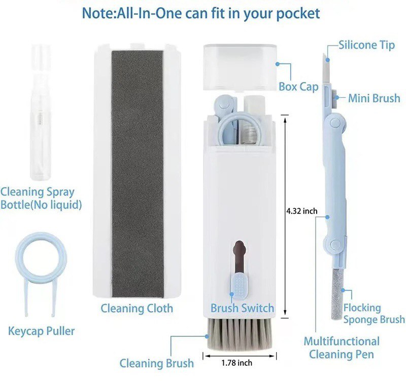 فرشاة  لتنظيف كمبيوترو الموبايل وهيدفون 7 في 1 الة متوفرة